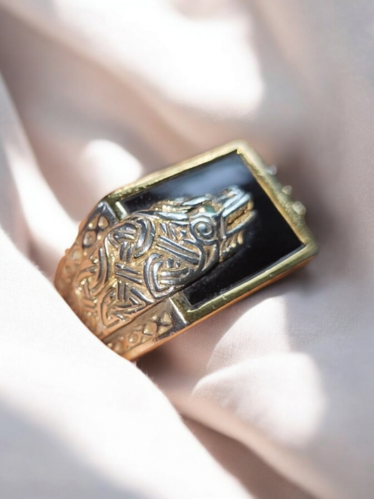 Dragon Onyx Emerald Ring