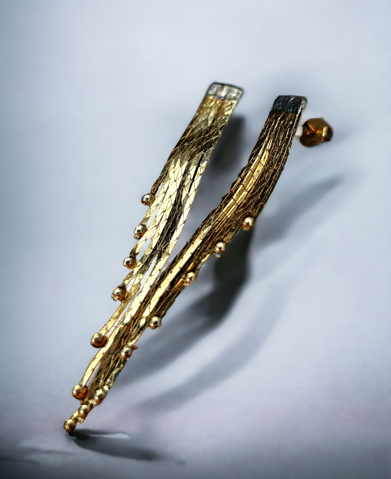 18k Yellow Gold Plated Over Sterling Silver Multi-Strand Beaded Dangle Earrings Designed By Trent The Jeweler.